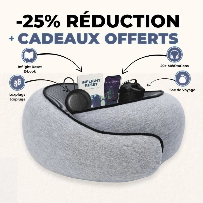 Vous vous réveillez en avion avec une raideur de la nuque ou des douleurs aux épaules? Vous n'êtes pas seul. La plupart des oreillers de voyage (surtout ceux en forme de U) n'offrent pas un soutien optimal. Les vestes encombrantes ou les écharpes roulées ne font qu'empirer les choses.